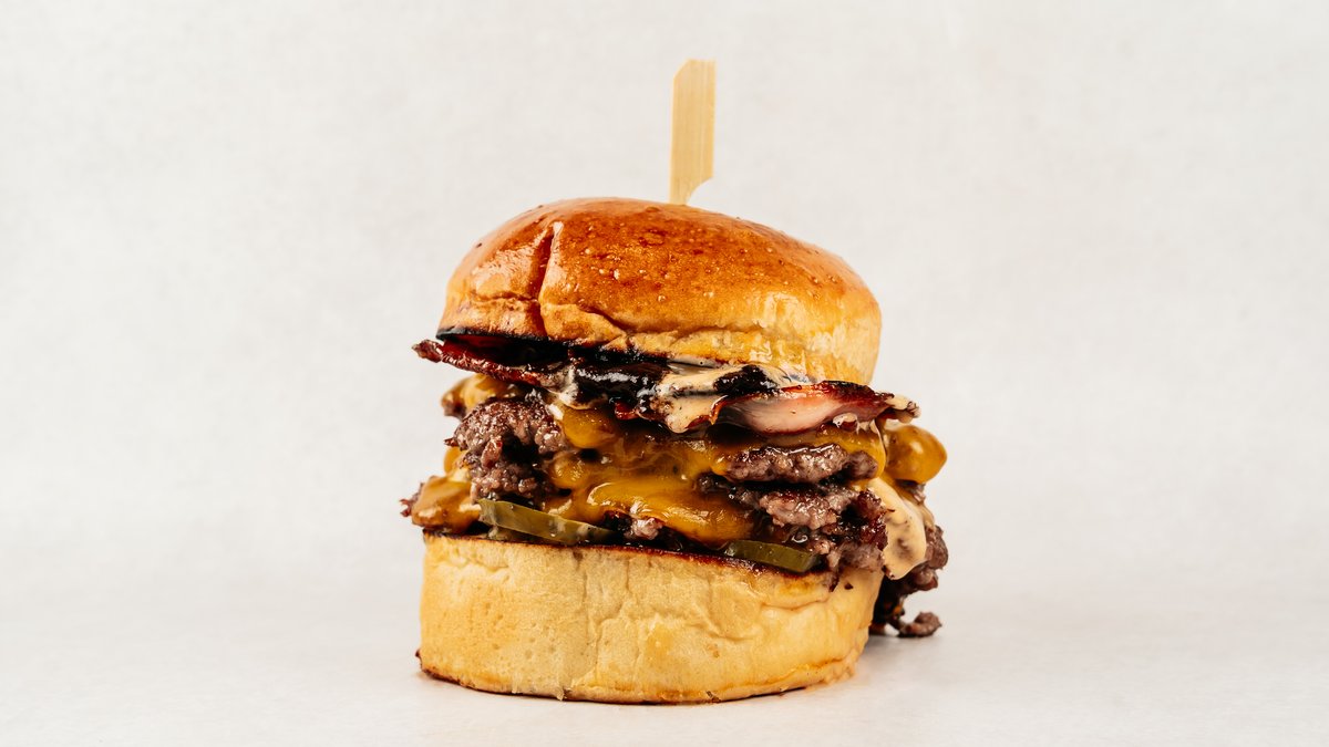 100% juneća smash pljeskavica, cheddar, DEM kapula, hrskava slanina, Smoky Vepar, kiseli krastavci
