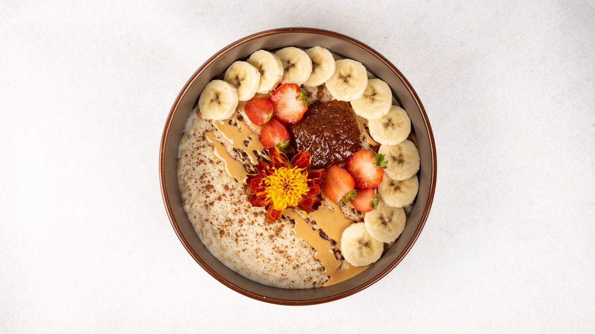 Tople zobene u kombinaciji sa zobenim mlijekom i WHEY PROTEINOM od vanilije. Na vrhu spoj banane, jagoda, cimeta, kikiriki maslaca i džema od smokve nikoga ne ostavlja ravnodušnim!
