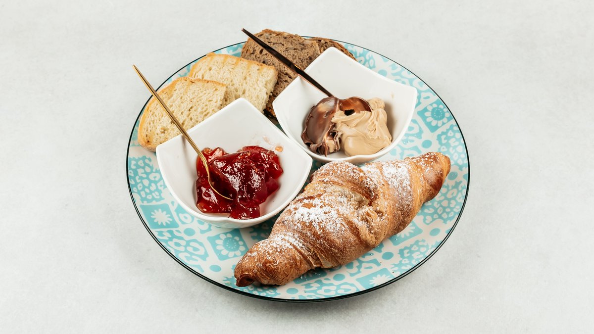 Kroasan, kruh, marmelada, Linolada, maslac