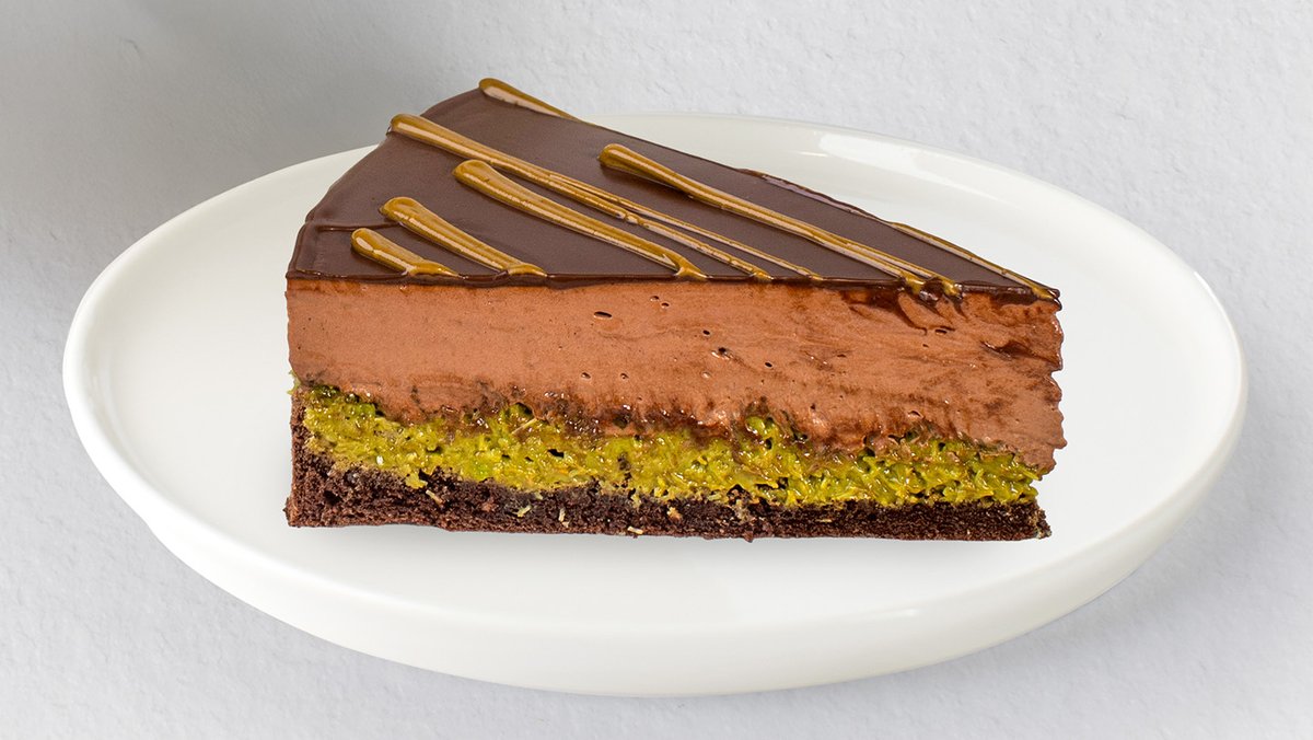 Čokoladni biskvit, hrskavi kadaif s praline pistacijom, krema od belgijske čokolade.
