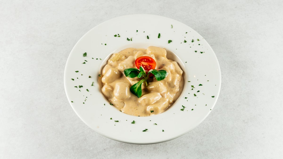 Njoki, gouda, gorgonzola, parmezan, mozzarella