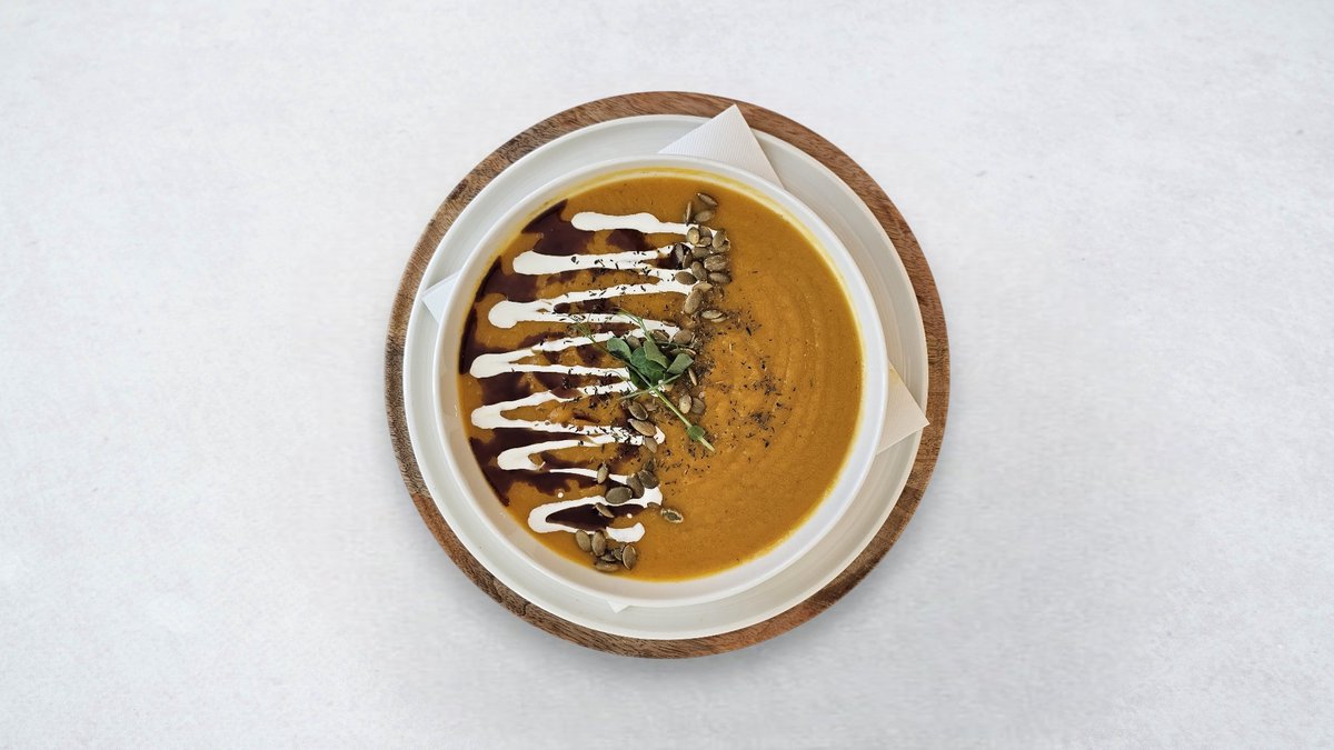 Buča, češnjak, vrhnje za kuhanje bez laktoze (samo kao dekoracija)