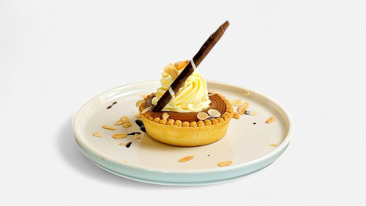 KOŠARICE OD PRHKOG TIJESTA (brašno, jaja, šećer, biljni margarin) - gotov proizvod (dobavljač Super Trend d.o.o.), ganache - mliječno vrhnje, mlijeko, margarin, tamna i mliječna čokolada, lješnjak granele (dobavljač Higis d.o.o.), preljev od mliječnog karamela ( dobavljač Higis d.o.o.)