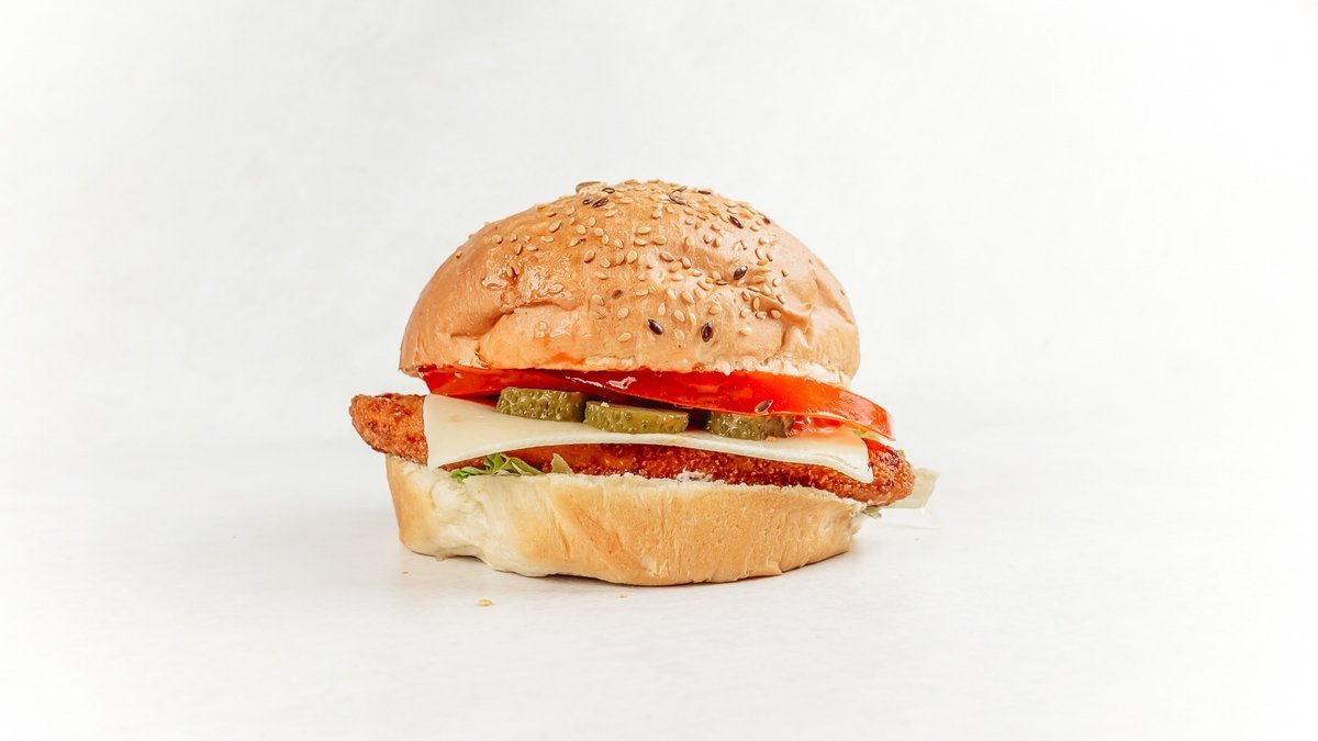 Brioche pecivo, pohana piletina u chipsu, sir, kiseli krastavac, coleslaw salata *slika je simboliÄŤna