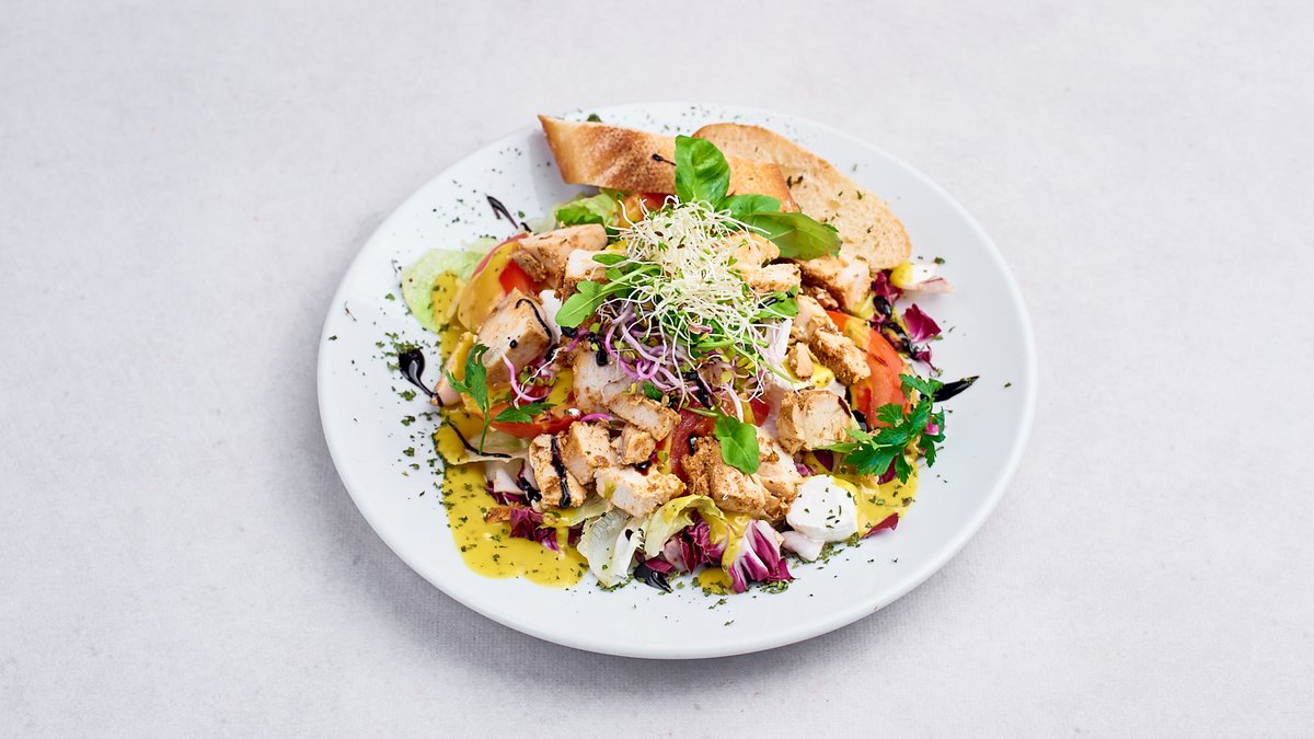 Salata, rikula, cherry rajÄŤica, krutoni, piletina, grana padano, cezar umak *slika je simboliÄŤna