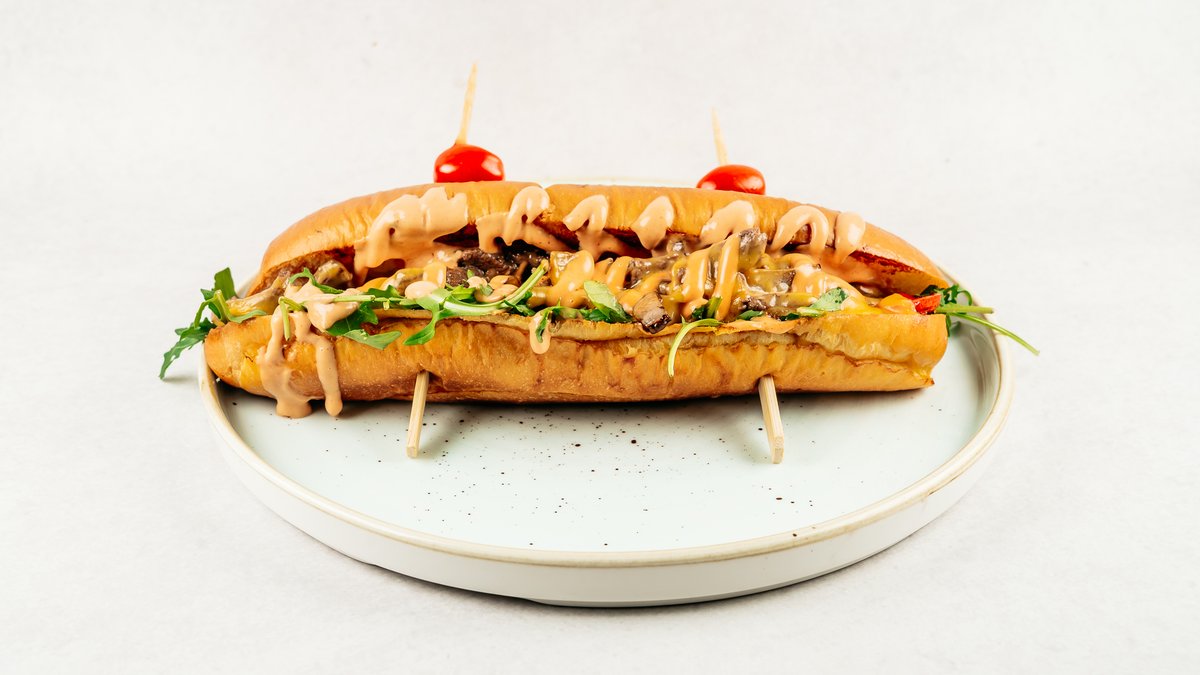 Brioche pecivo, ramstek, kapula, paprika, cheddar, domaći umak