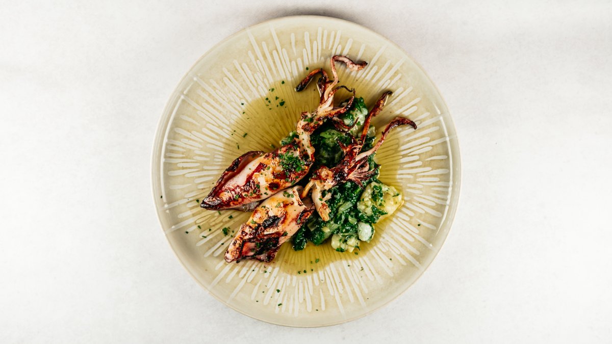 Juha od poma, tuna sa žara s prilogom, biskvit od maslinovog ulja i naranče *slika je simbolična