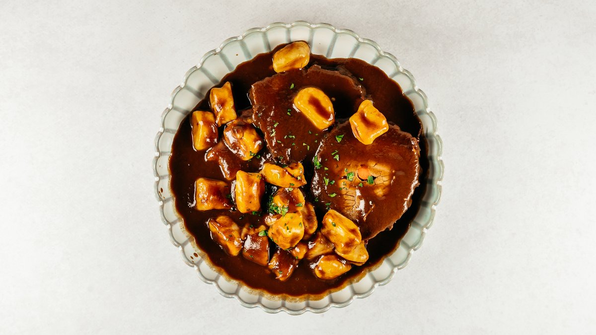 Domaći njoki, krema od ovčjeg sira, meso od jelena