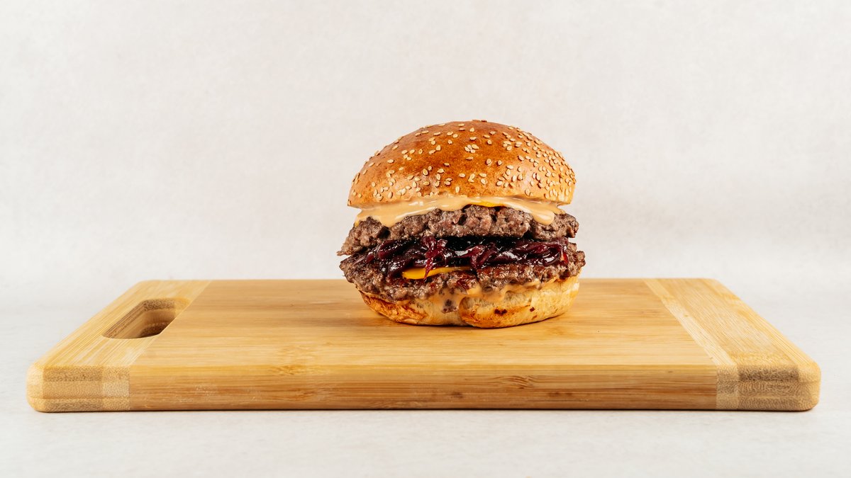 2x 100% junetina, cheddar, karamelizirani luk,Signature Biberon umak, handmade brioche
