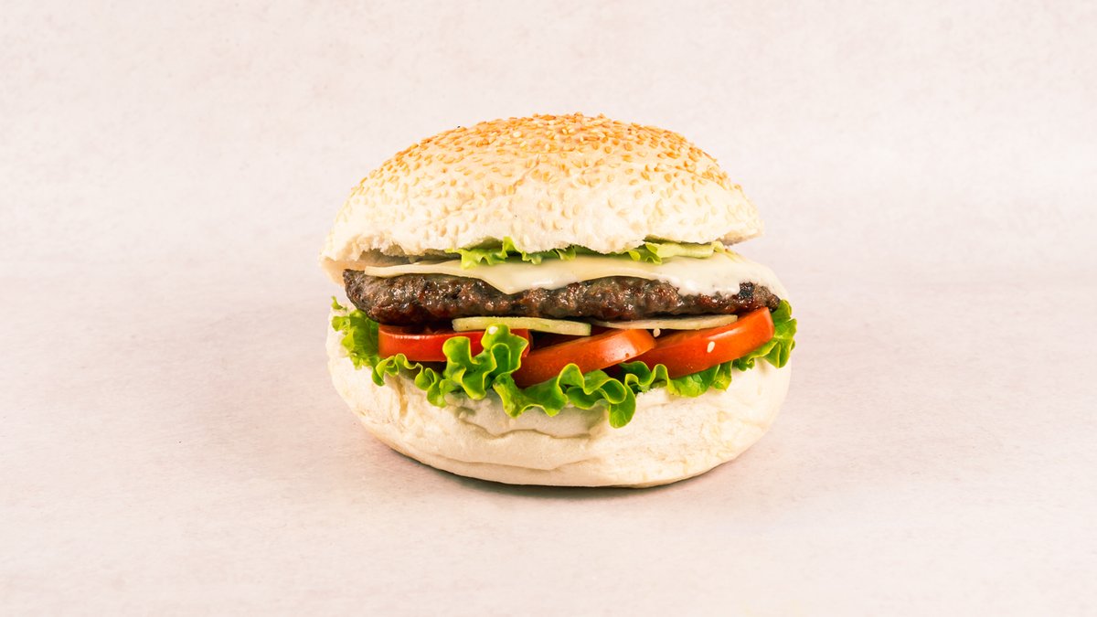 100% domaći burger od junetine, zelena salata,rajčica ,topljeni sir, kiseli krastavci, Sunset umak *slika je simbolična