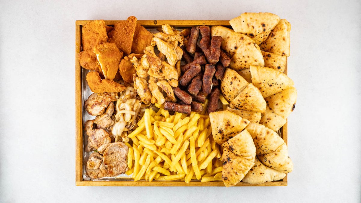 Ćevapi 7 komada ,piletina, punjena pljeskavica, dva kajmaka, ajvar, kapula, dva somuna, lepinja *slika je simbolična