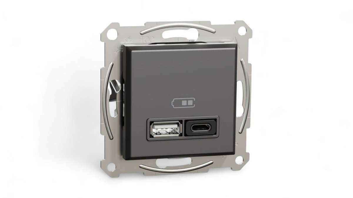 USB punjač tip A + C 45W 3A antracit, Asfora, Schneider Electric