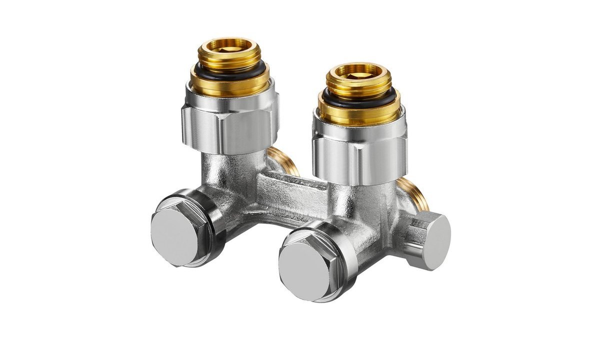 H-ventil dvocijevni Jurgen Schlosser, ravni, za pločasti/aluminijski radijator, s reduciranim nazuvicama, krom