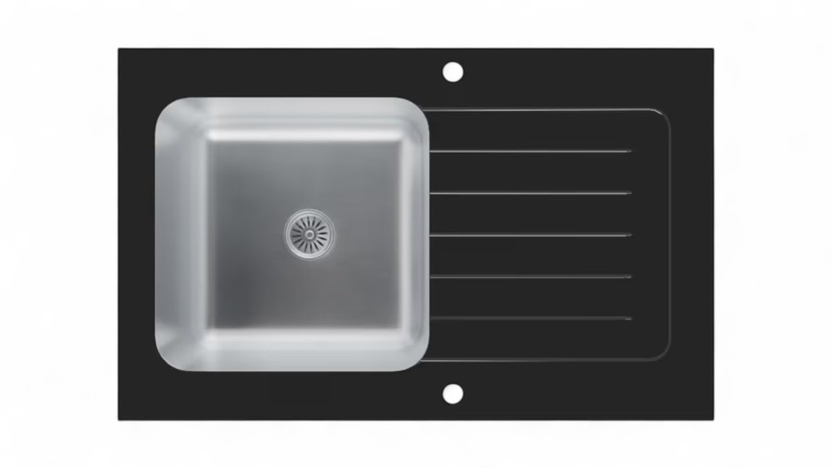 Sudoper stakleni Concepto Black 80x50 cm, crni, jedno korito i ocjeđivač