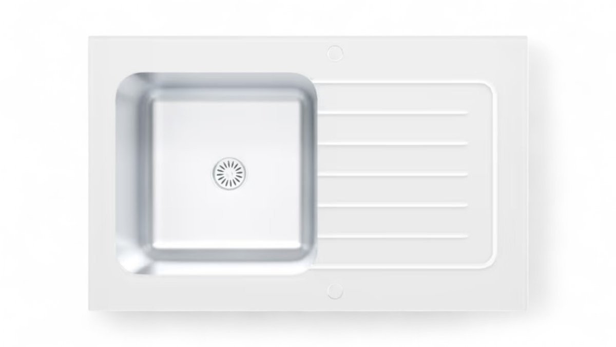 Sudoper stakleni Concepto White 80x50 cm, bijela, jedno korito i ocjeđivač