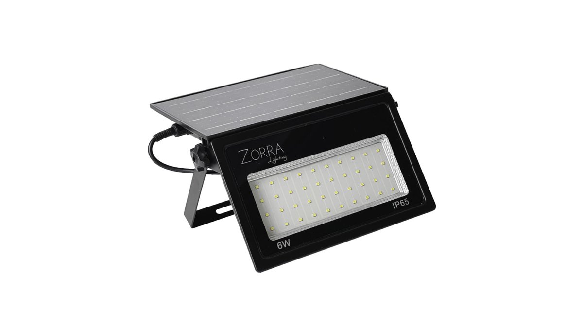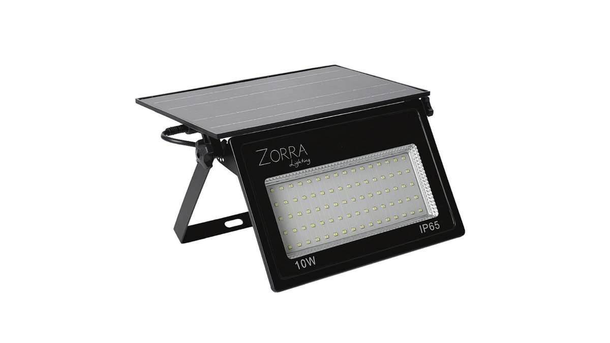 LED Solarni reflektor Zorra Lighting Pondero II (2600lm, 6000mAh, 180-200lm/W, 8W, IP65), crni