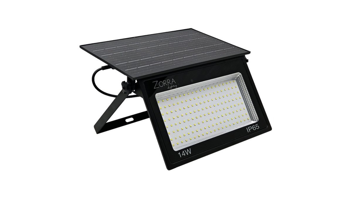 LED Solarni reflektor Zorra Lighting Pondero II (1400lm, 3000mAh, 180-200lm/W, 5W, IP65), crni