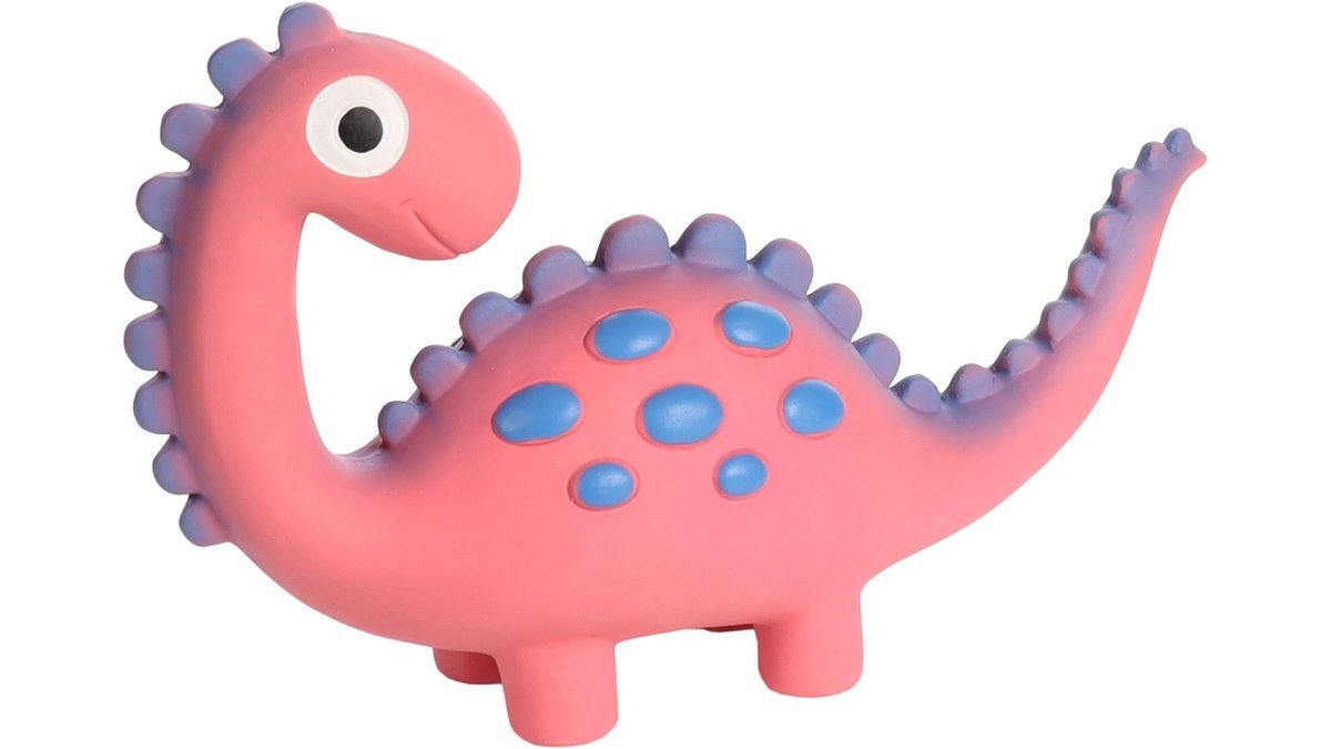 FLAMINGO latex igračka za pse Dino, zvučna, roza, 7,7x25x15cm