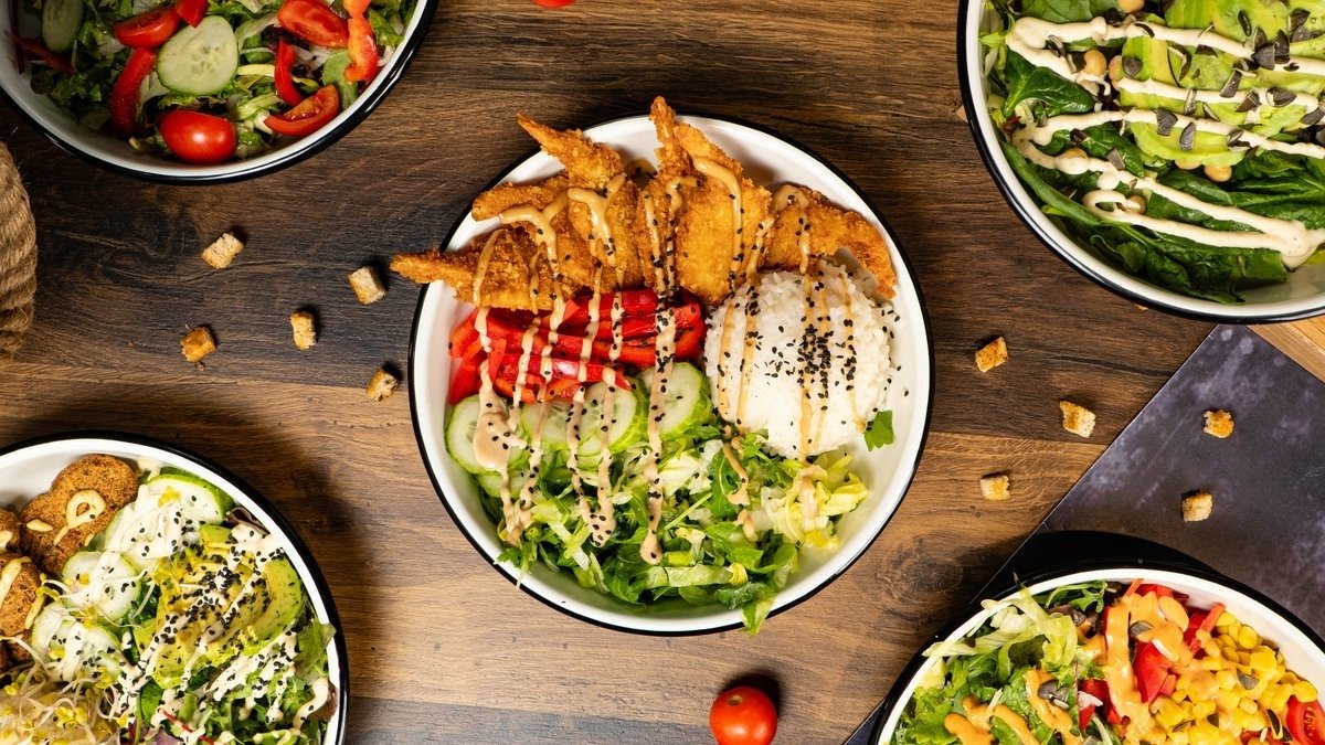 Various and delicious salads, prepared from the freshest vegetables and carefully selected ingredients
