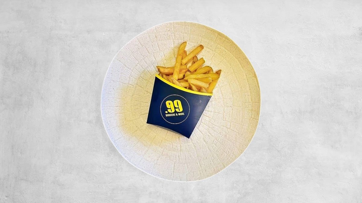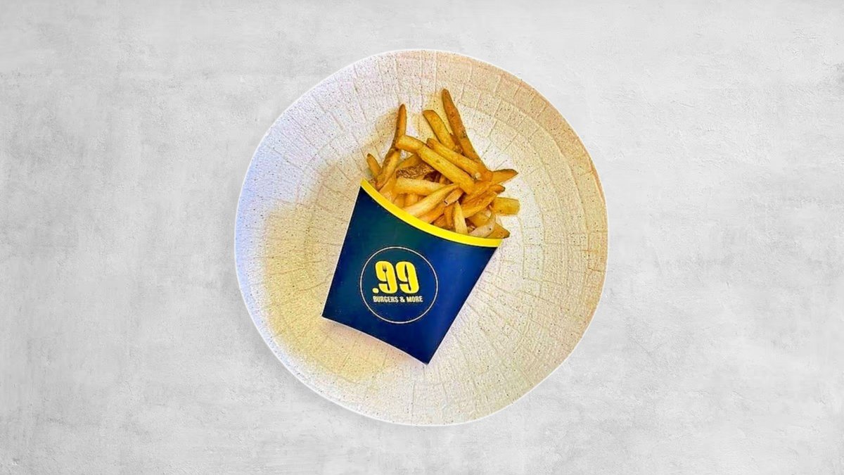 Brioche premium pecivo, 2x 100% juneća smash pljeskavica, 2x cheddar sir, 2x pržena panceta, sitno sjeckani luk, classic .99 umak + krumpirići + piće po izboru