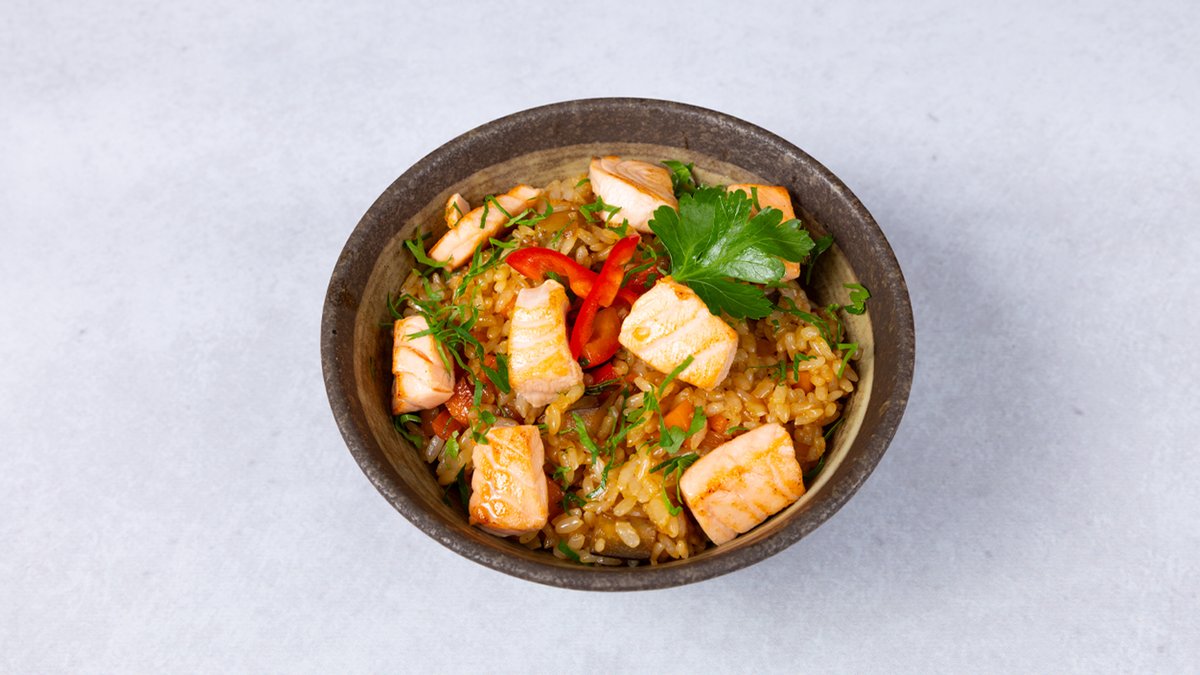 Riža na pari s lososom