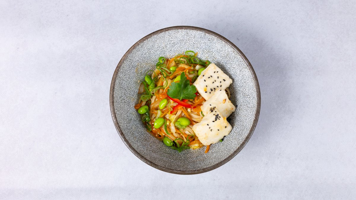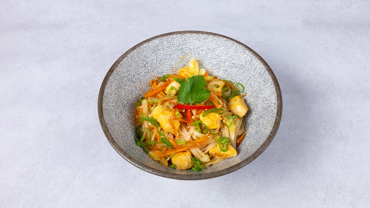 Udon noodles, piletina, povrće