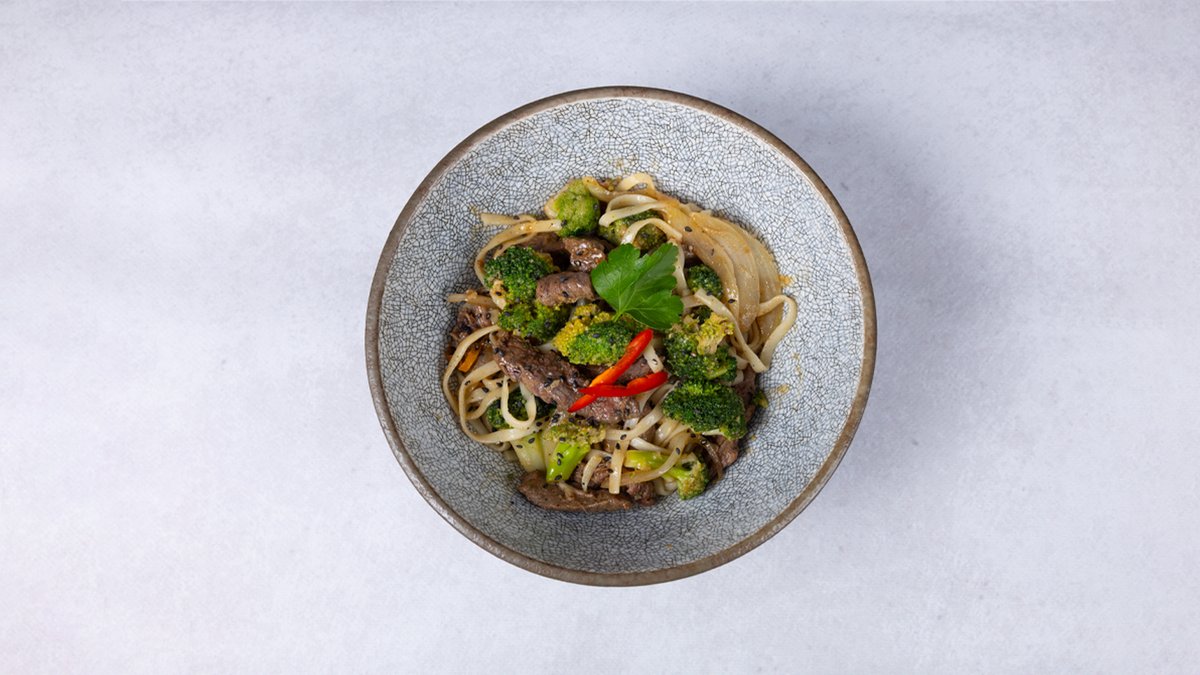 Udon noodles, govedina, povrće