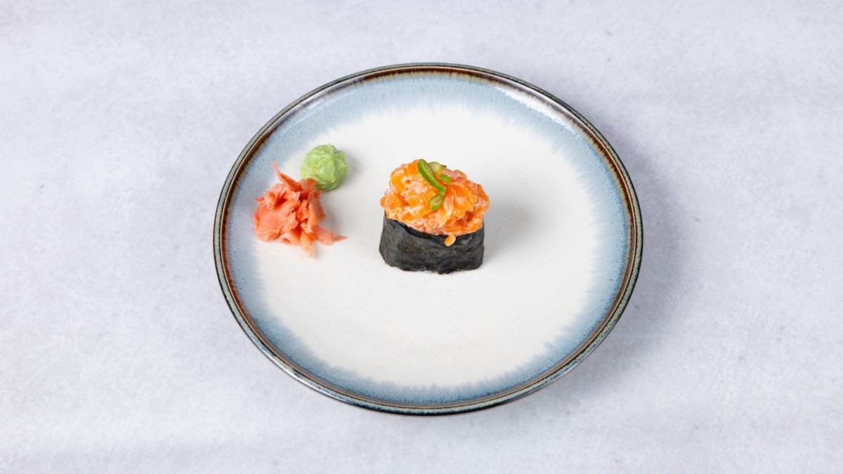 Losos u riži i japanska nori alga, začinski umak po izboru, 6 komada