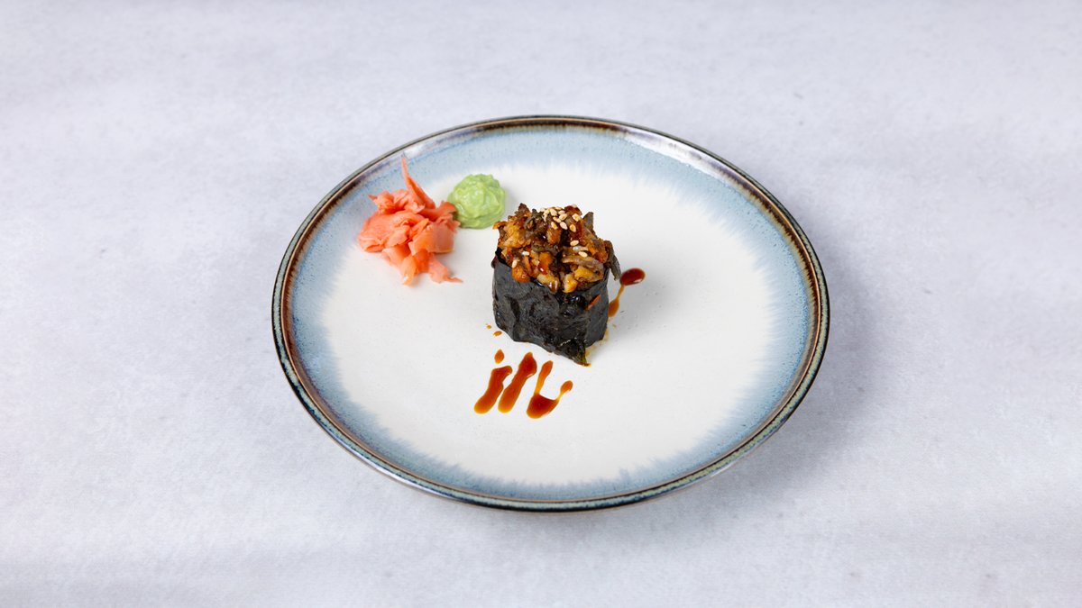 Duboko pržene vruće rolice s jeguljom, krastavac, Philadelphia sir, zapečene s kremastim umakom od kavijara