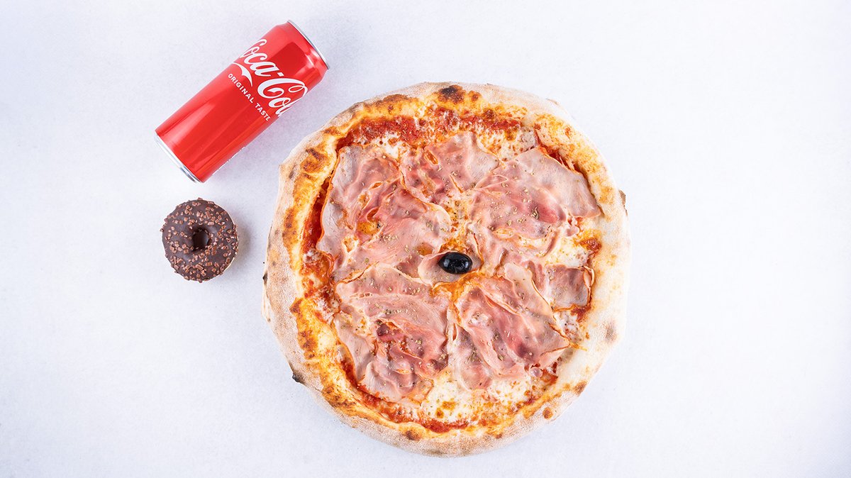 Umak od rajčice, mozzarela, šunka, Coca-Cola 0,33 ml *slika je simbolična