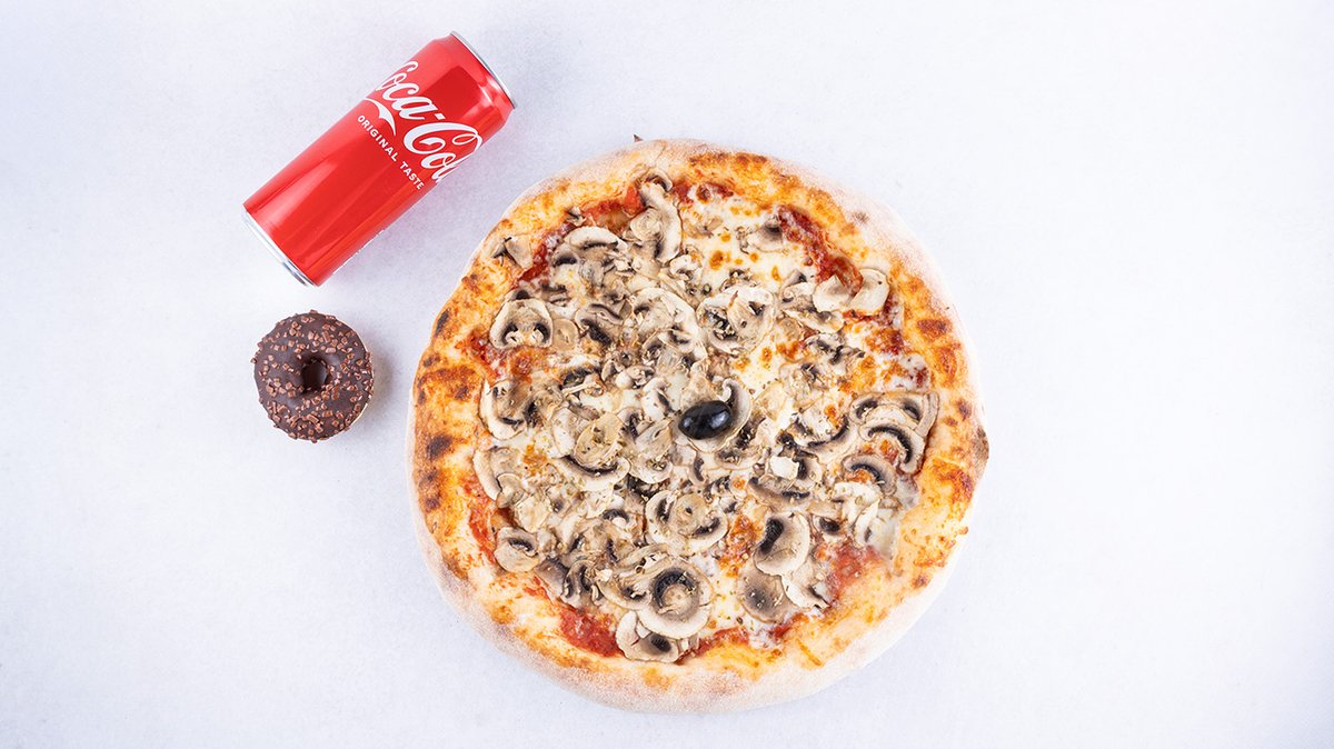 Umak od rajčice, mozzarela, gljive,Coca-Cola 0,33 ml *slika je simbolična