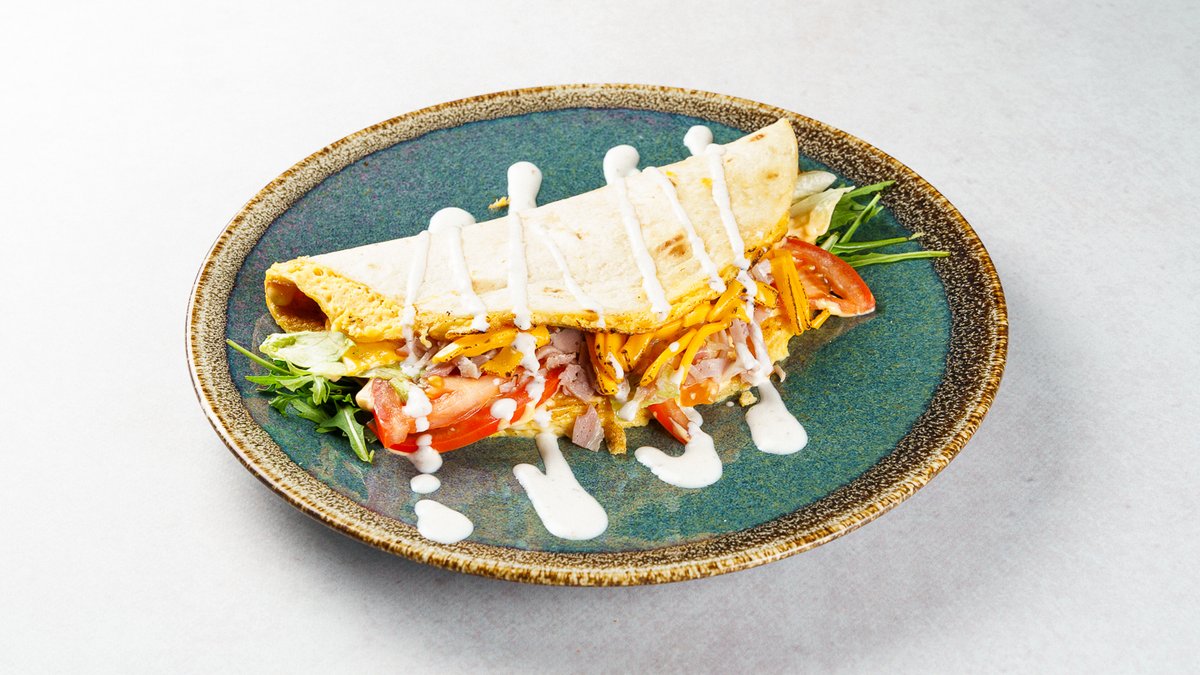 Tortilja, jaja, iceberg, rajčica, šunka, cheddar, jogurt umak