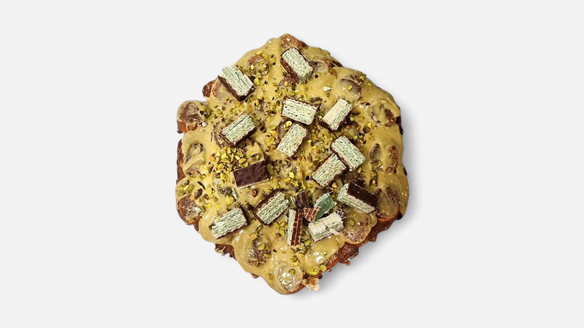 Pistacio krema sa bijelom čokoladom, drobljeni pistacio, vafl pistacio