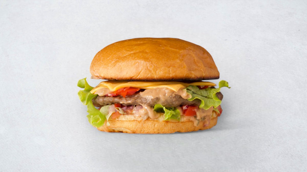 Pecivo, mljeveno 100% juneće meso (150 g), specijalni D-sauce umak sa sitnim komadićima kiselih krastavaca, relish (sitni komadići luka i rajčice), zelena iceberg salata, sir