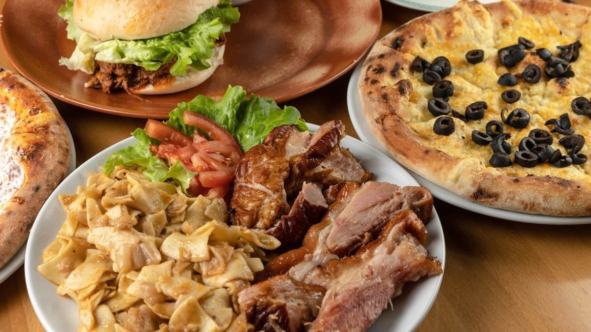 4x ćevap, 2x gurmanski uštipak, 2x gurmanski ražnjić, punjena vješalica, mala pljeskavica sa sirom, mladi pečeni krumpir, šampinjoni na žaru, zapečeni grah, šopska salata, zelje, 2x lepinja *slika je simbolična