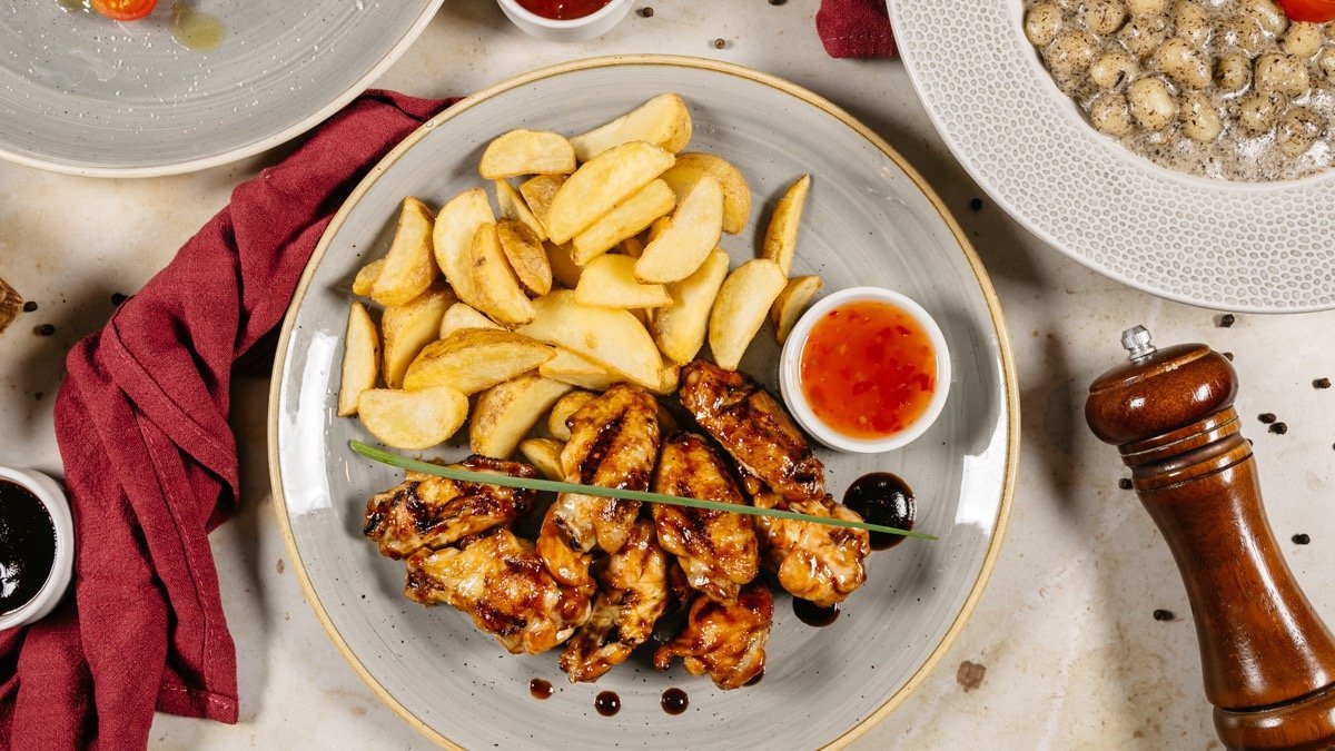 Pileća krilca, batkići s prilogom mladim krumpirom