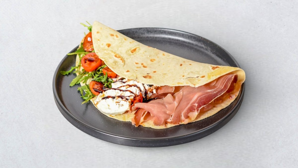 Talijanski pršut, kremasta burrata, svježa rukola, cherry rajčice, balsamico krema.