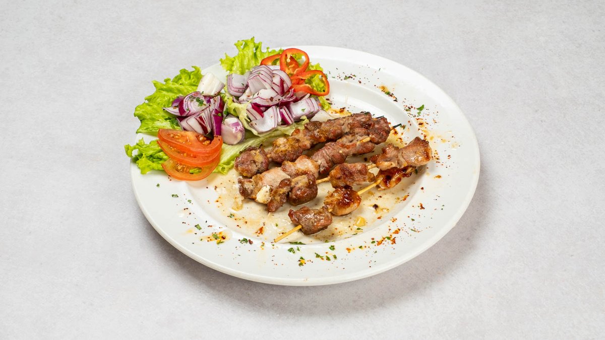 3 komada svinjski ražnjići, lepinja *slika je simbolična