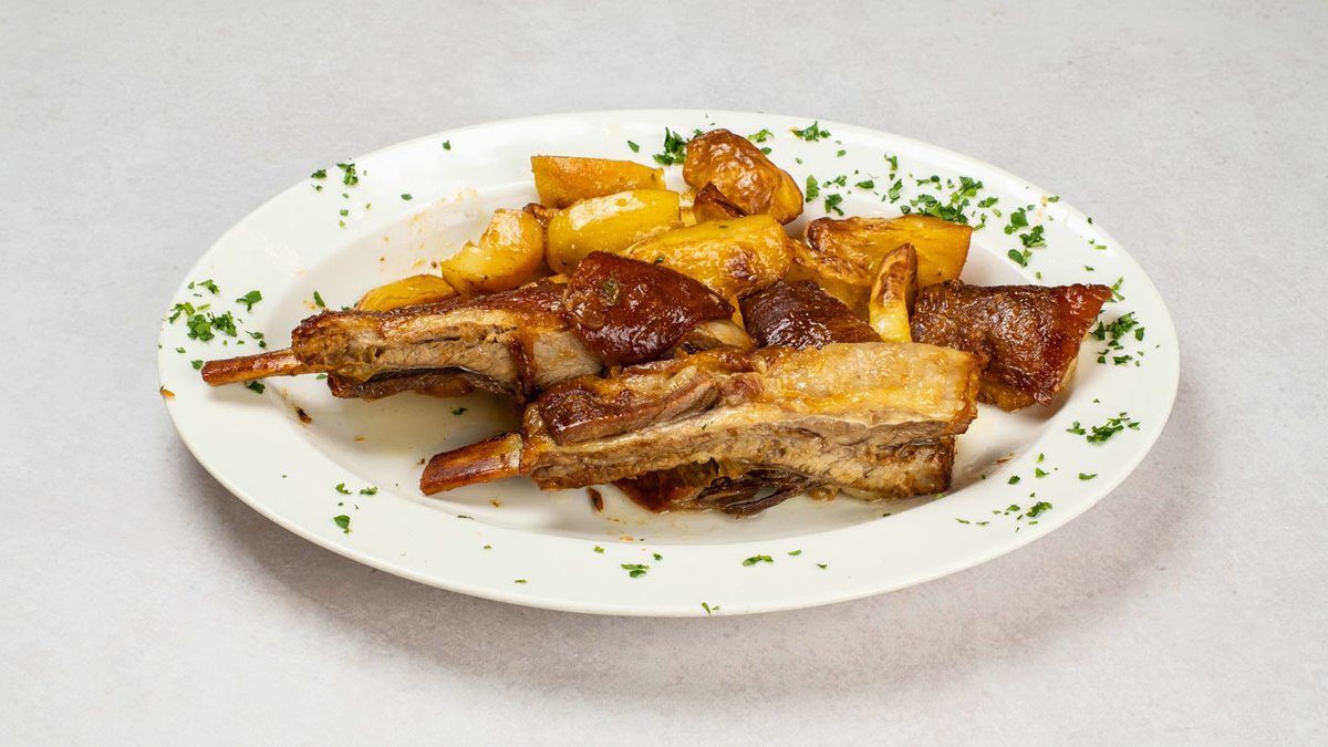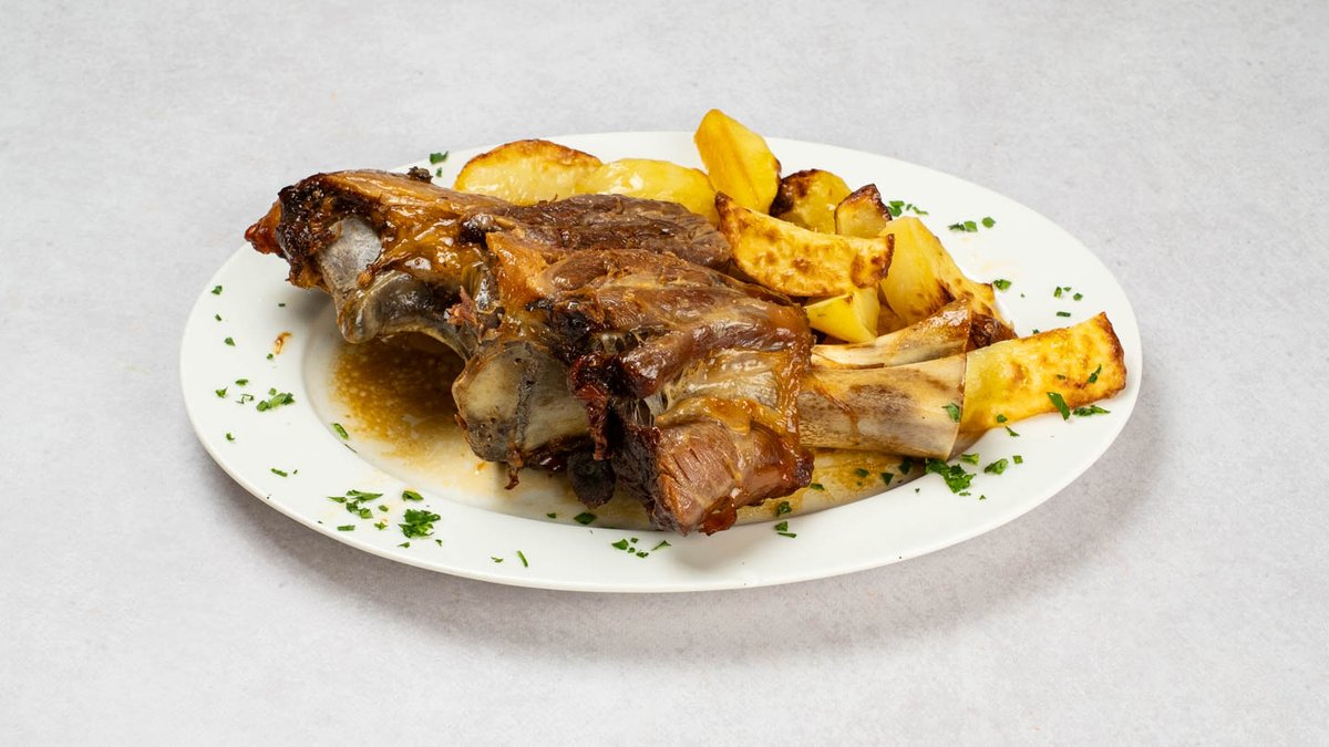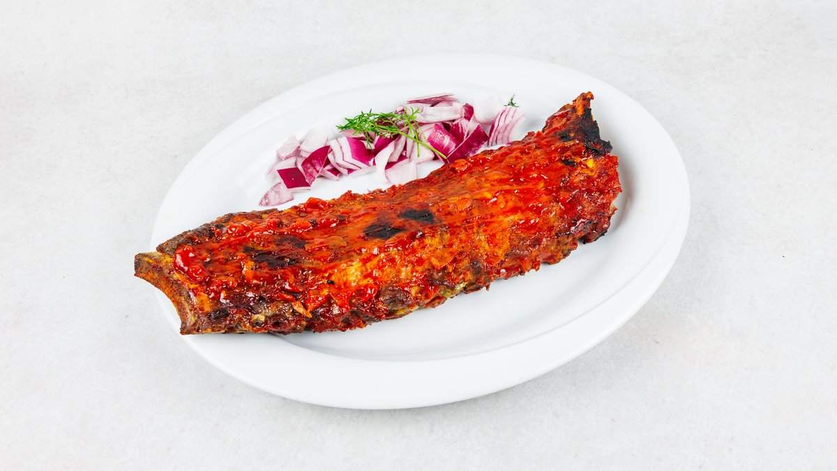 Marinirana rebara cca 0.5 kg pečena na roštilju na drveni ugljen, pomfrit, kečap *slika je simbolična