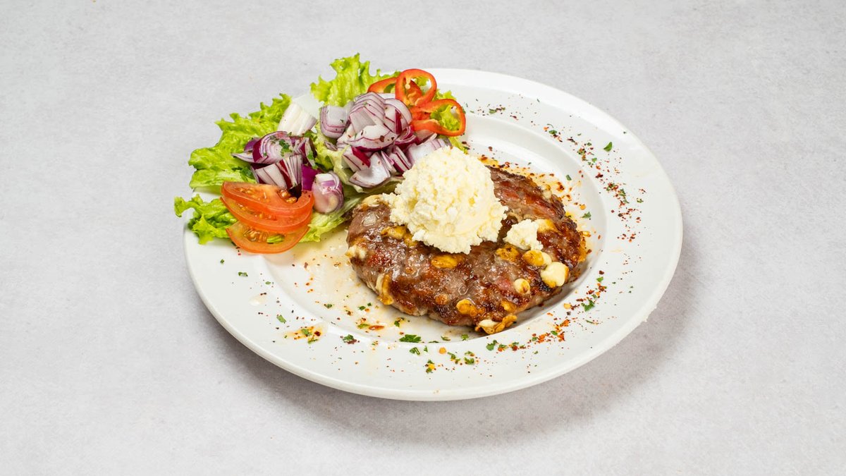 Pljeskavica punjena sa sirom 300g, lepinja *prilog nije ukljuÄŤen u cijenu *slika je simboliÄŤna