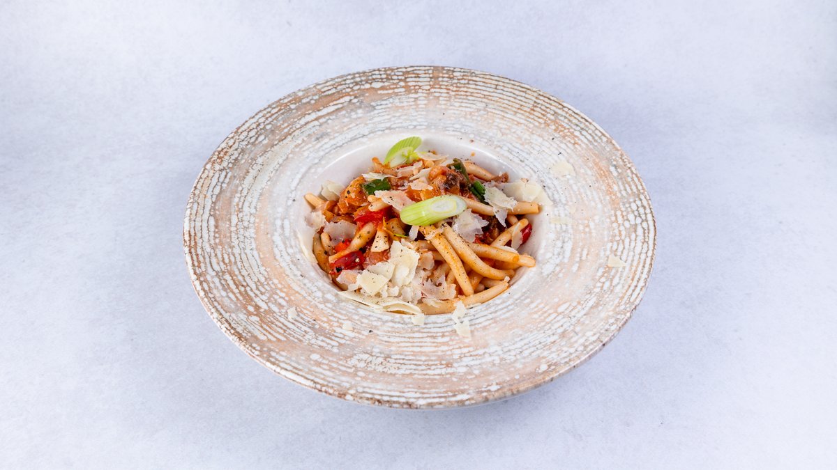 Umak od rajčice, panceta, Pecorino, chili, maslinovo ulje, sol,papar