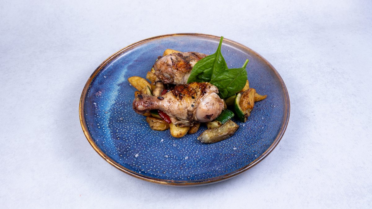 Pečeno marinirano pile (450g), povrće sa žara i krumpir lađice s ružmarinom