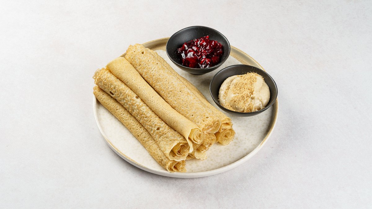 8 palačinki, bijela linolada, plazma keks i višnja