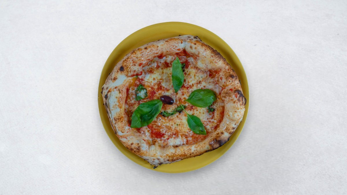 San Marzano rajčica, mozzarella fior di latte, veganska šunka, šampinjoni, artičoke, masline, bosiljak, maslinovo ulje