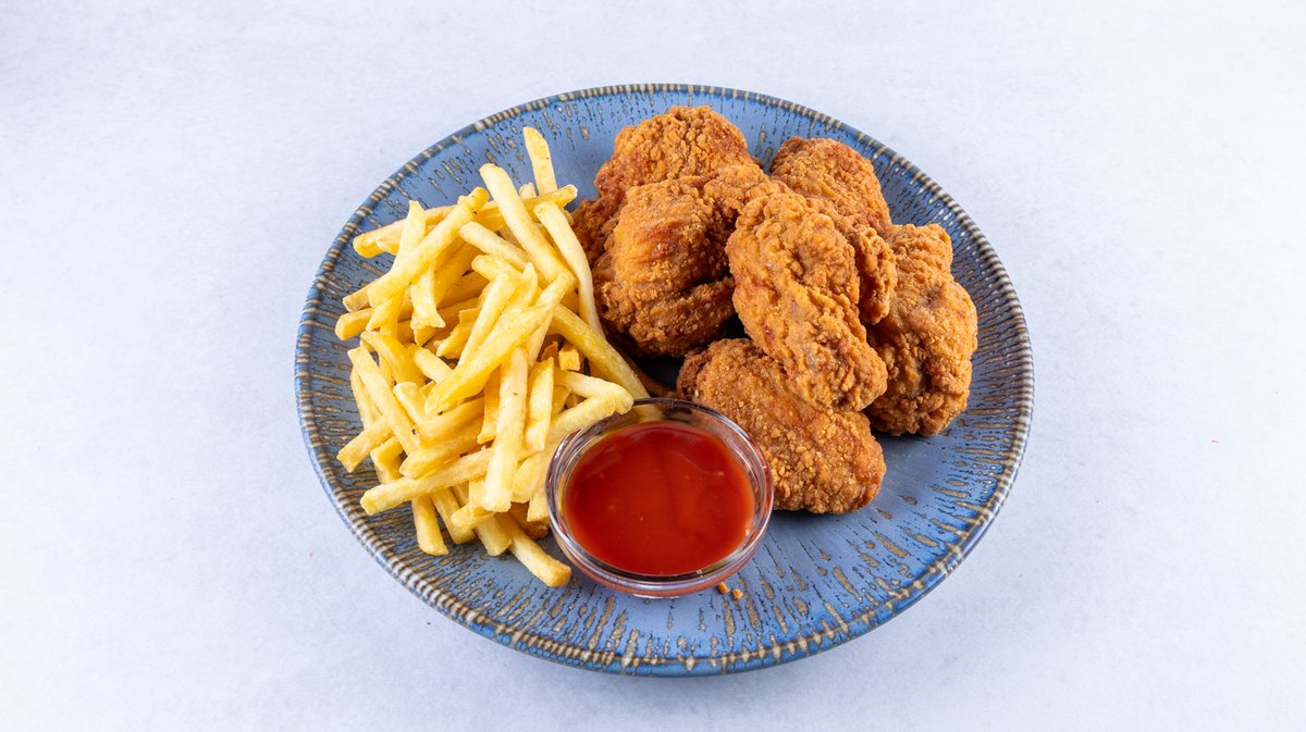 Pržena pileća krlica, prženi krumpirići , ketchup, 6 komada