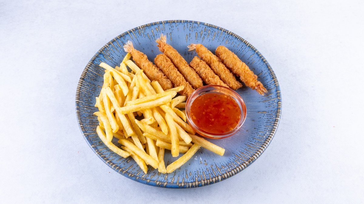 Prženi repovi kozica, prženi krumpirići, slatko-ljuti umak, 6 komada