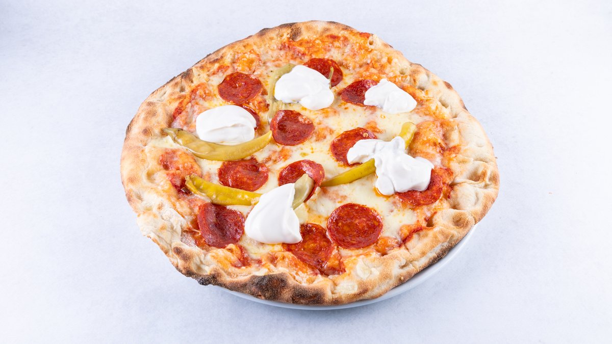 Kulen, rajčica, vrhnje, ljuti feferoni, sir, mljevena chilli papričica
