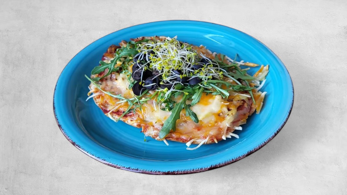 Tijesto od rižinog brašna i tapioke s povrćem, šampinjonima, veganskim sirom i začinima