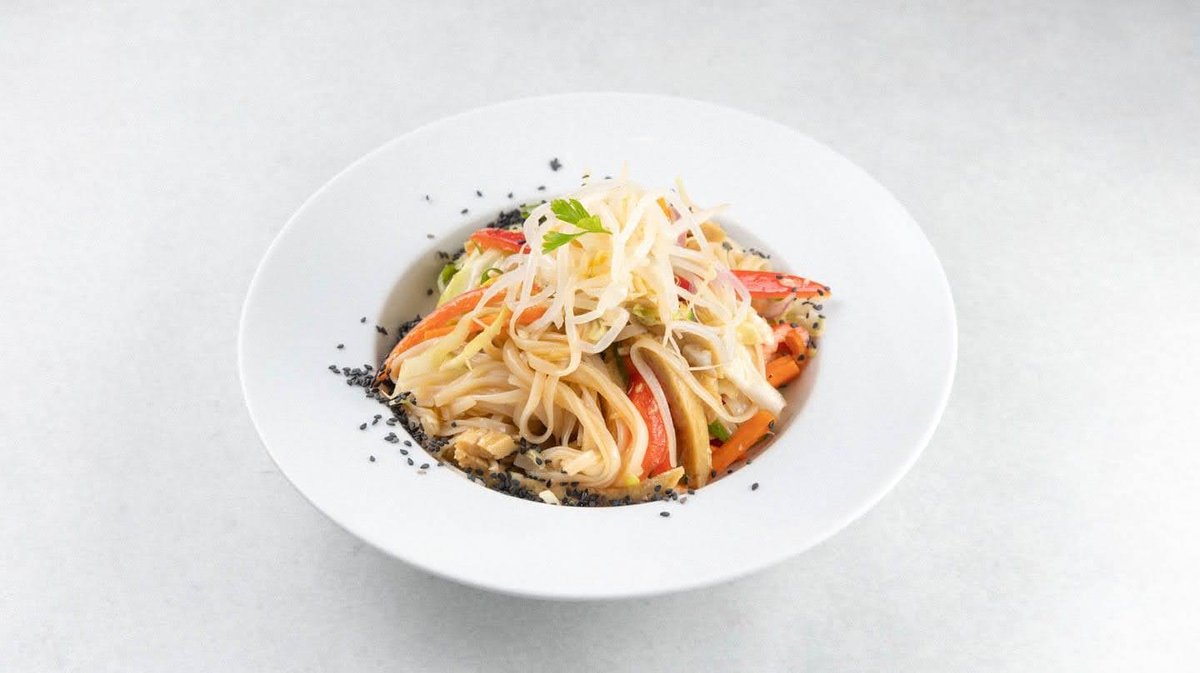 Rižini rezanci, paprika, luk, mrkva, kupus, soya sos, oyster mashroom sos, tamarind, agava sirup, tofu *slika je simbolična