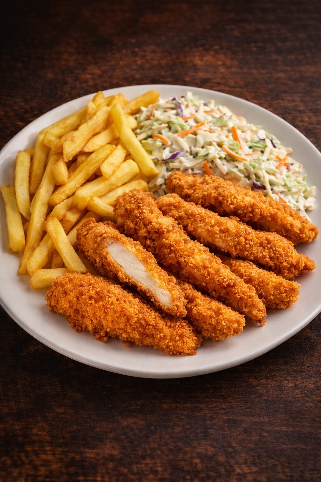 Rántott csirkemell hasábbal, coleslaw salátával
